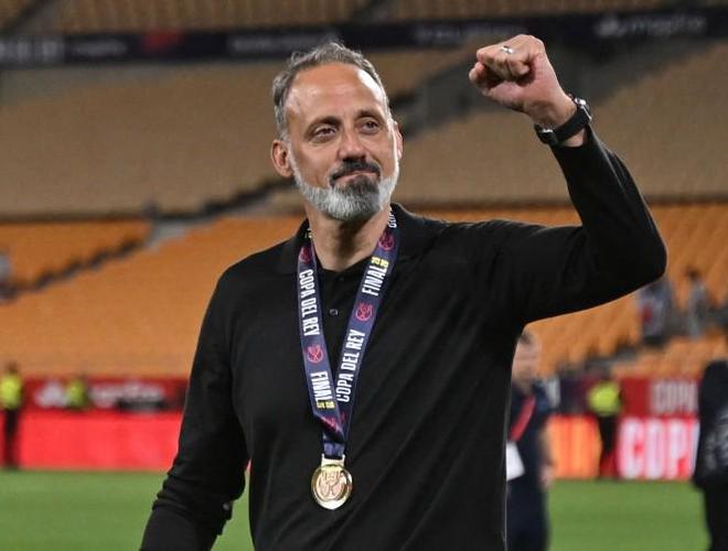 对于这位48岁的主帅而言,这是他职业生涯的首次决赛、首个冠军,而对于皇家社会球迷而言,这也是他们时隔39年后再次亲历荣耀时刻——皇家社会上一次夺冠是在2021年,当时他们在国王杯决赛中击败了德比对手毕尔巴鄂竞技,但由于疫情原因,尽管这场决赛被推迟了一年进行,两队球迷最终还是没能来到现场为球队加油助威。